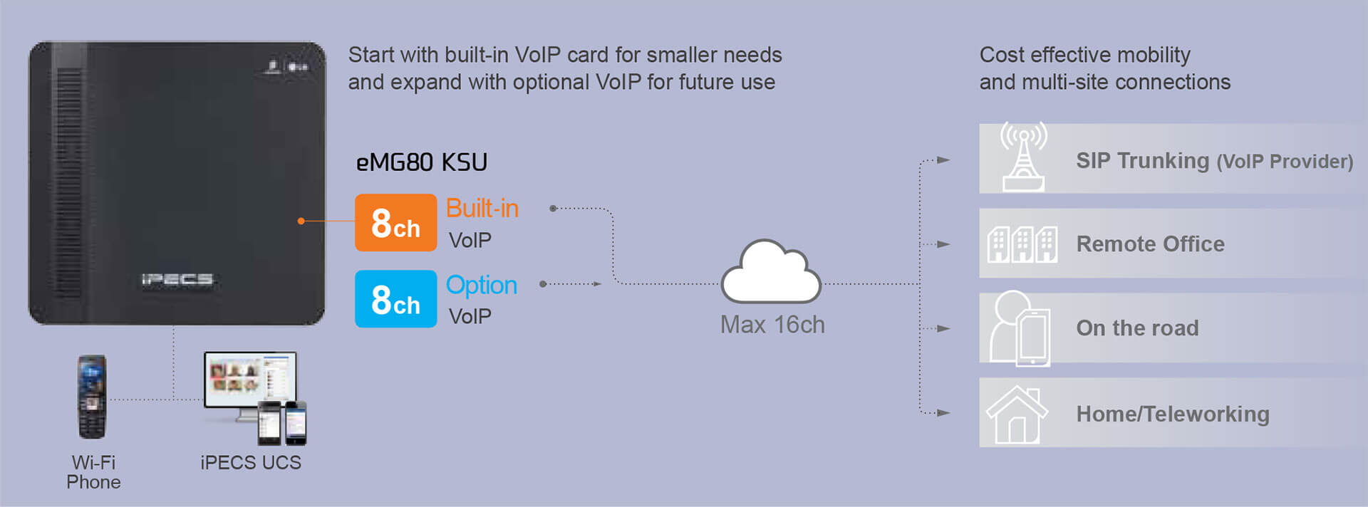 Perfect for SME’s and able to host up to 16 SIP channels, the iPECS eMG80 is the perfect phone system to improve your company’s communications.